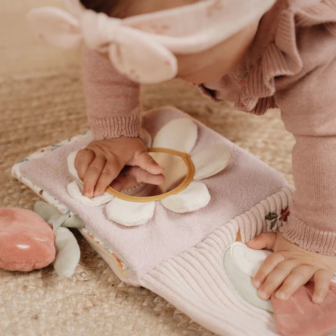 ¡No te aburrirás con este colorido libro de actividades de Fairy Garden! Un adorable ciervito te invita a explorar el jardín mágico. Descubre un sinfín de texturas y actividades, como un espejito, un sonajero y juguetes escondidos. Este libro de tela también incluye etiquetas táctiles. Además de estimular los sentidos, ¡es ideal para desarrollar la coordinación óculo-manual!