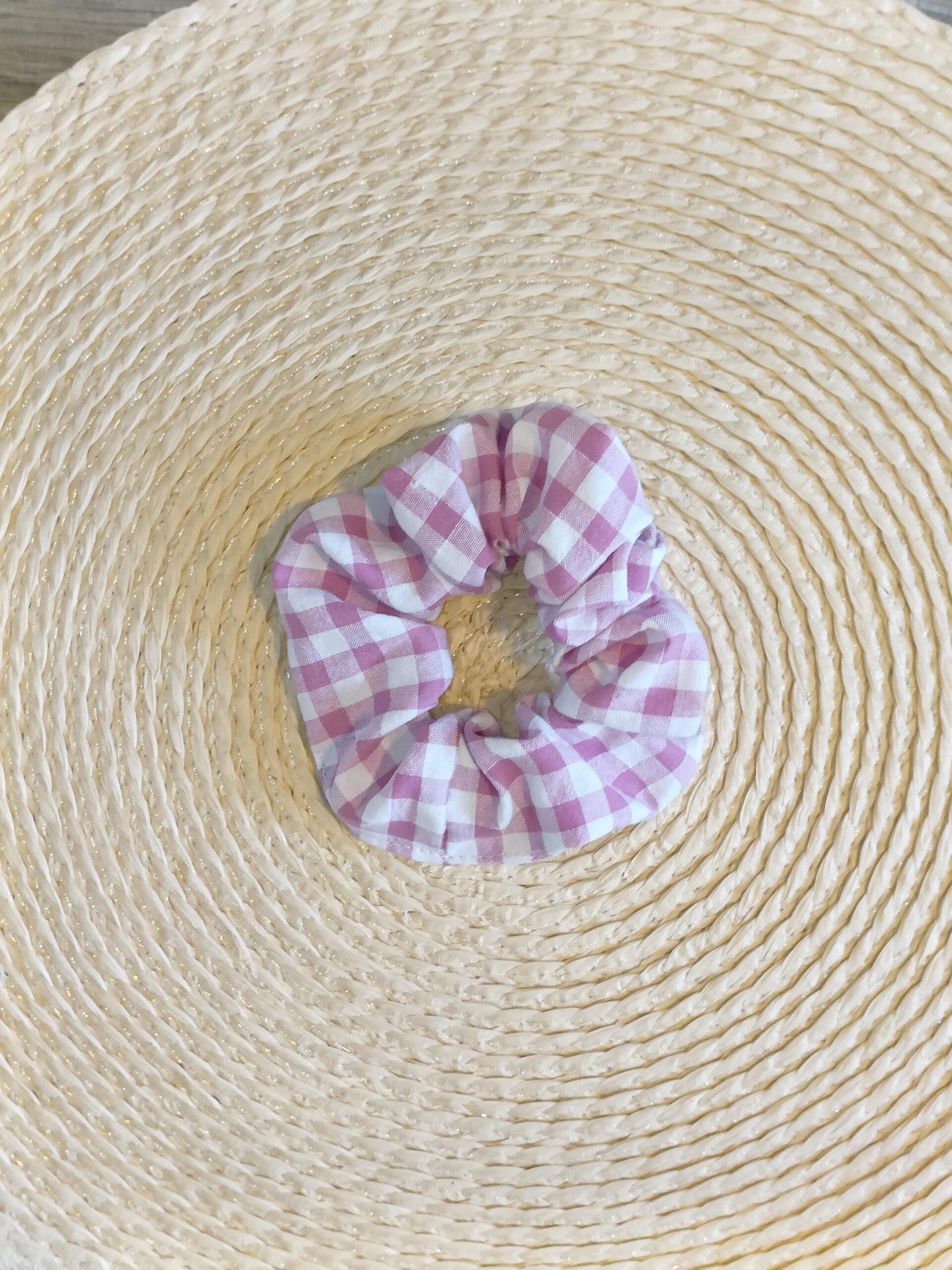 Coletero en tela de algodón con efecto arrugado en estampado vichy malvarosa con goma en el interior.